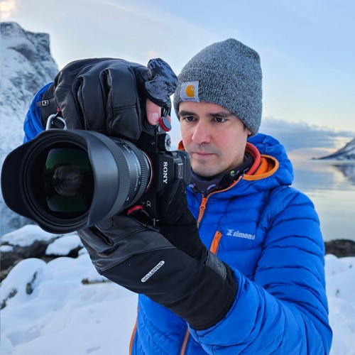 He began photographing the rugged coastline of Asturias, gradually developing a distinctive visual language focused on powerful, atmospheric, and remote landscapes. A key turning point came in 2021 during his first trip to the Norwegian Arctic, where he specialized in panoramic photography, Arctic environments, winter light, and aerial perspectives.