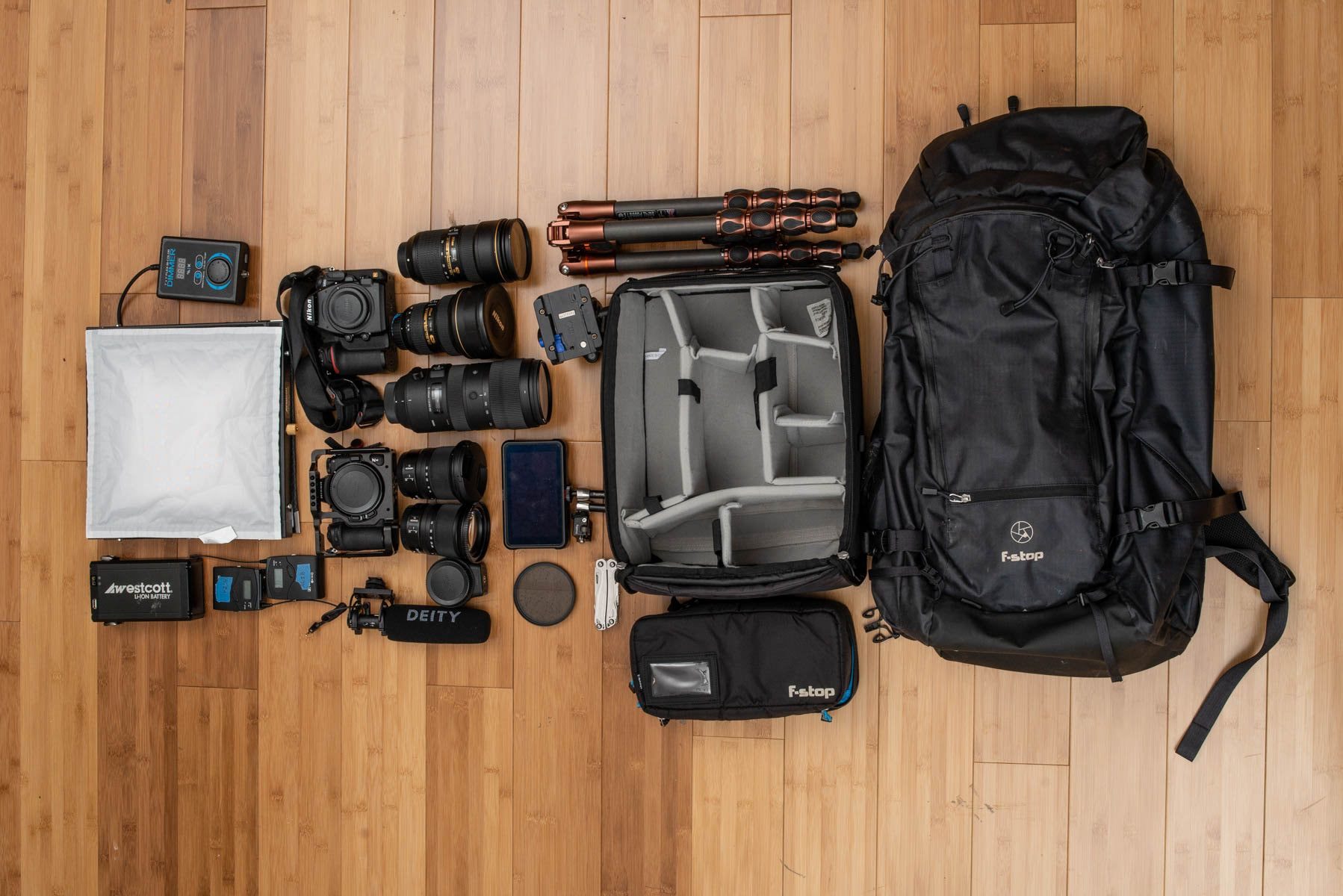 I am able to pack all this plus a few changes of clothes in my Sukha bag and Pro Large ICU. If I’m shooting from one location and I need to bring a drone or extra lights and it isn’t a disaster zone, I pack Airport Roller bag as well. I put the tripod and light stand in the front outside pocket. In the side pockets I put flip flops or shoes, sometimes the lightstand and in the top pocket I put things I need to get quickly, like a rain cover, rain jacket, hat, scarf, etc.