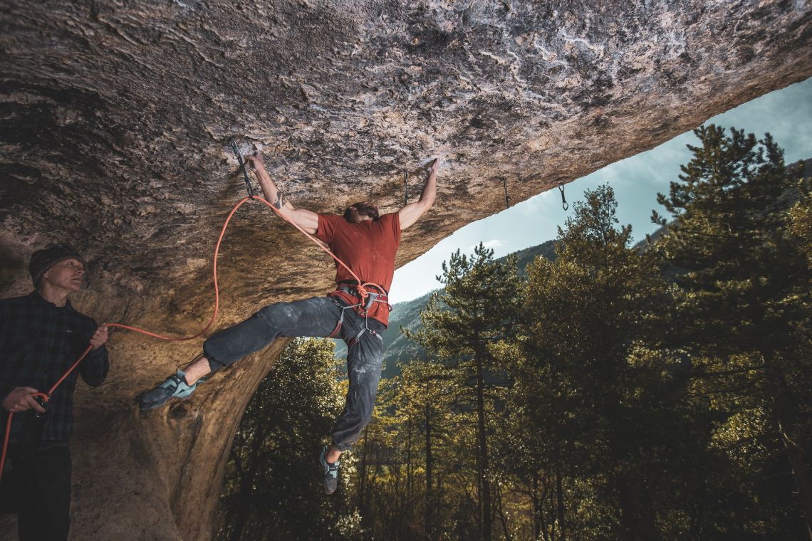 Firstly, I shot the first section of the route that was inside a dark cave with a very bright sun outside. For this reason, I used the flash with a big umbrella as a diffuser in order to achieve both the proper light on the climber and the correct exposure on the background.